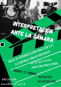 21 de FEBRERO. Taller intensivo de INTERPRETACIÓN ANTE LA CÁMARA🎬
